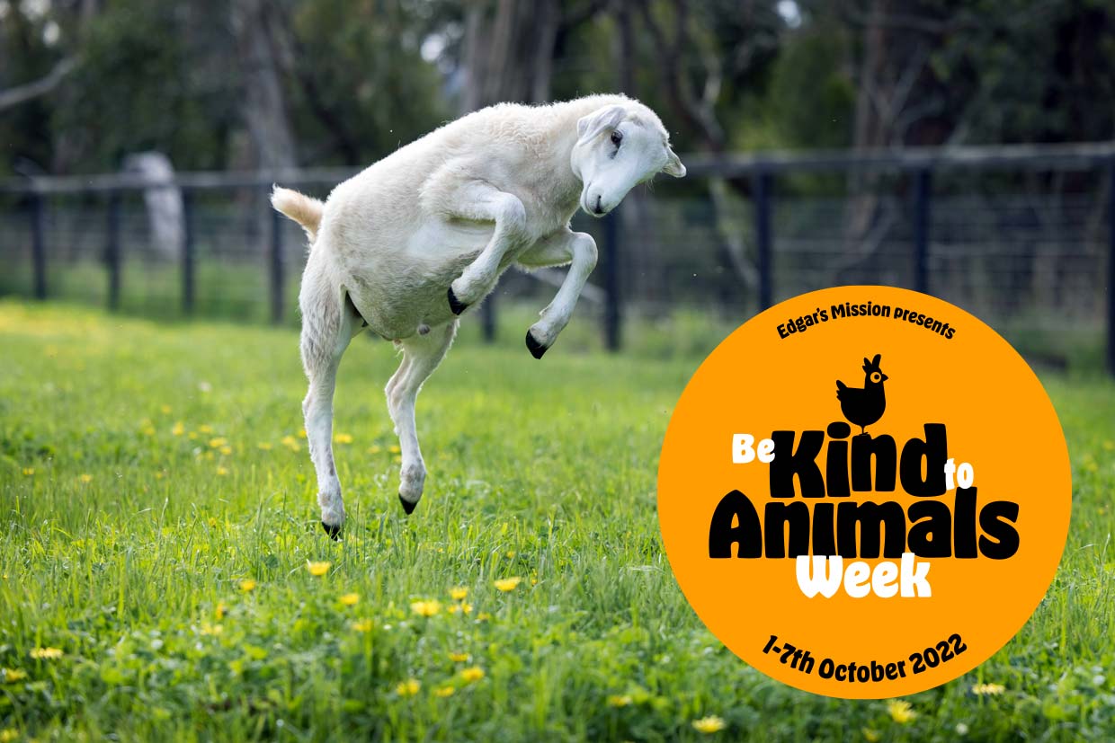 Be Kind to Animals Weekis an initiative from Edgarโs Mission, a not-for-profit sanctuary for over 400 rescued farmed animals with a vision of a humane and just world for all. If you'd like to help, you can donate here.
